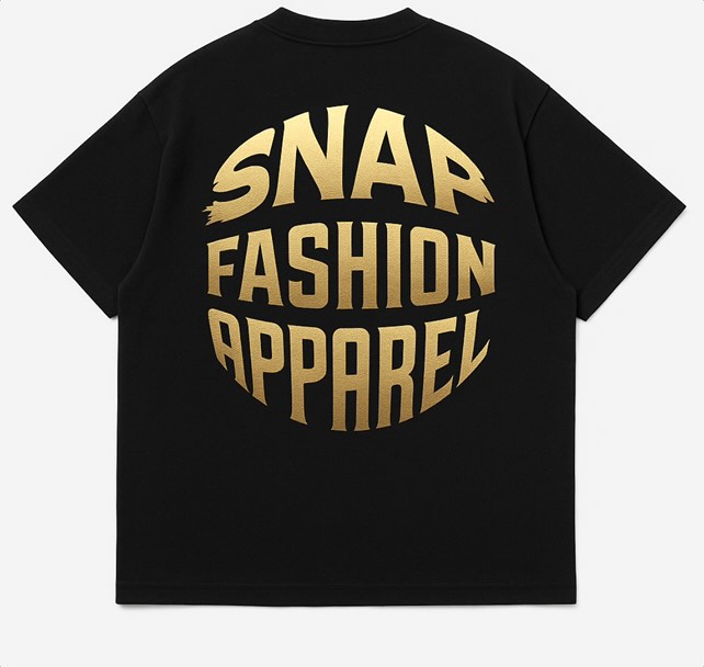 MAKE AN UNFORGETTABLE IMPRESSION WITH THE HIGH END LUXURY SNAP LUXE STATEMENT TEE, A PREMIUM BLACK COTTON T-SHIRT DESIGNED FOR BOLD TRENDSETTERS. FEATURING A RADIANT GOLD FOIL PRINT THAT READS “SNAP FASHION APPAREL” IN A POWERFUL SPHERICAL LAYOUT, THIS DESIGN BLENDS URBAN FLAIR WITH HIGH-END FASHION ENERGY. THE SLEEK METALLIC FINISH ADDS A TOUCH OF LUXURY, MAKING IT THE PERFECT CHOICE FOR THOSE WHO DEMAND BOTH COMFORT AND STATEMENT STYLE IN ONE LOOK. IDEAL FOR NIGHTLIFE, STREETWEAR CULTURE, OR FASHION-FORWARD CASUAL WEAR.